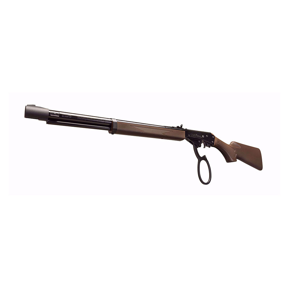 The classic American BB gun is back in a new way. Open up the Marlin Lever Action BB rifle and welcome your family into the wonderful world of "backyard" shooting sports! The Marlin Lever Action rifle fills up with 650 rounds of .177 caliber steel BBs and with a single stroke of its iconic lever shoots BBs at 300 FPS. Topping off this great looking lever action BB gun are its sleek polymer wood grain finished checkered handguard, elegant wood-look stock and the “Big Loop” lever making the Marlin easy to operate for just about any hand size. The Marlin Lever Action is easy to operate: keep it pointed in a safe direction at all times, open the loading gate up by the muzzle end at the end of the barrel, pour in 100s of steel BBs, pull the lever down until it stops, return the lever to its resting position, acquire your airgun target, put the rifle on fire, squeeze the trigger, repeat for all day fun! Be sure to wear your safety glasses! It's powered entirely by spring-actioned compressed atmospheric air, uses no gunpowder, and should not be confused with any form of a firearm. The best targets to use are paper, tin cans, plastic bottles, and the like. This Marlin BB gun is super quiet, so you won’t disturb any of your neighbors, and makes an excellent choice to gift wrap as a present for all kinds of occasions like birthdays, Father's Day, graduations, and Christmas!